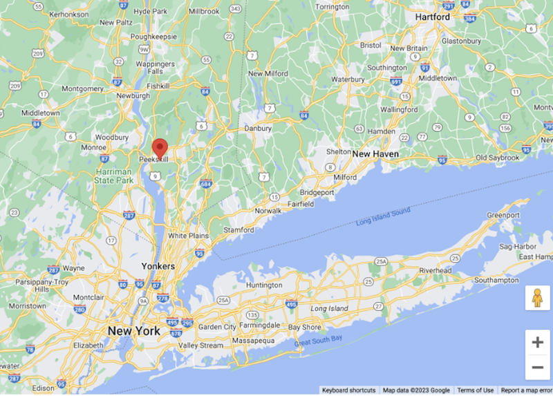 Peekskillに颯爽とそびえ立つGoogleマップのピン