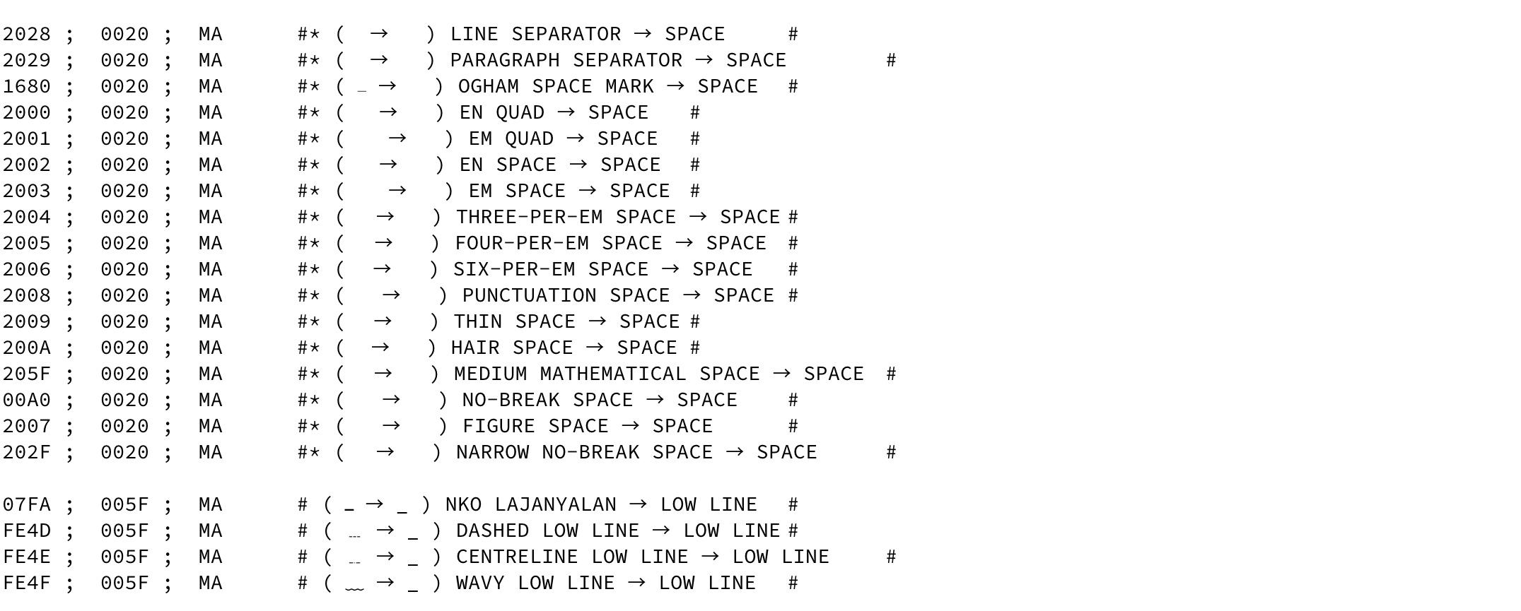 Unicodeコンソーシアムの持つリストよりは、homoglyphリポジトリのデータの方が1行になっててわかりやすいかもしれませんね。