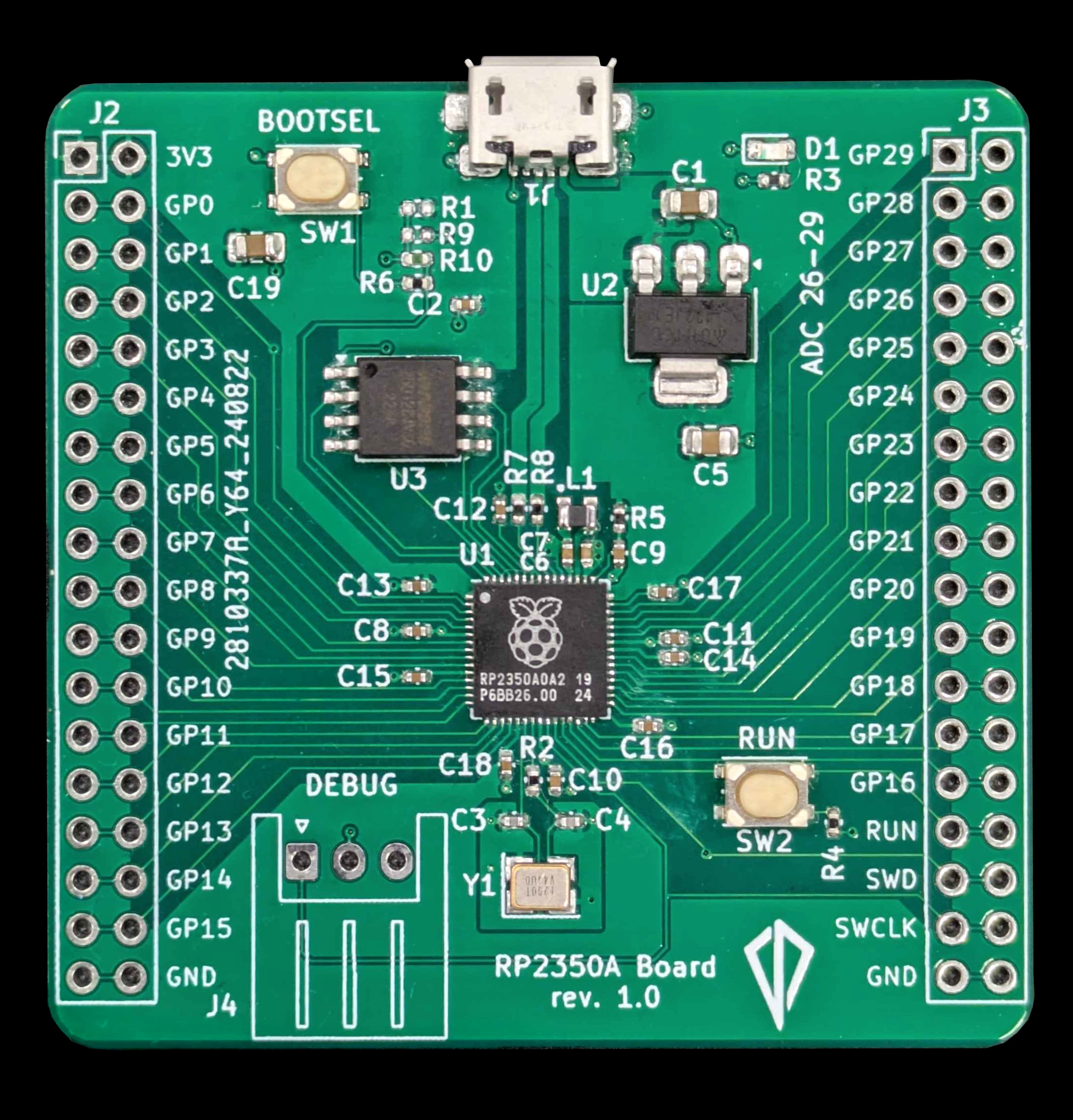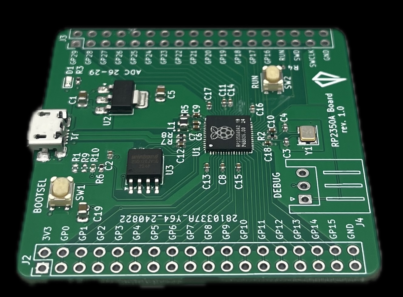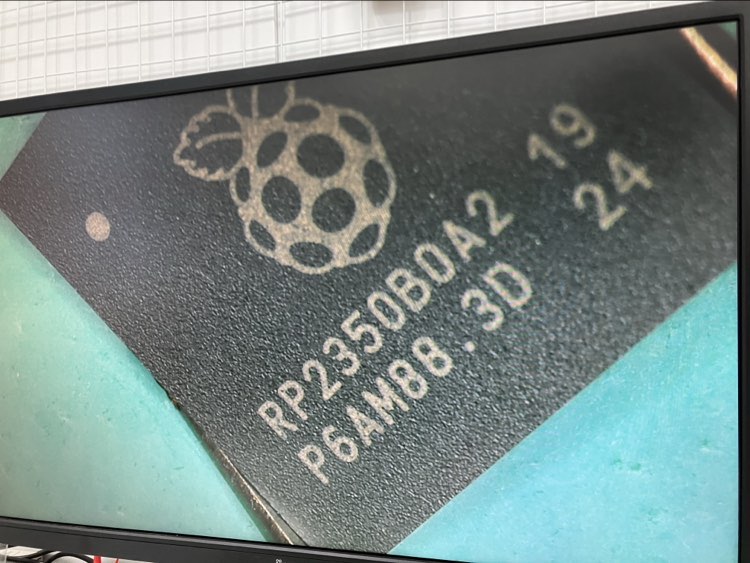 ハードウェアチームメンバーによる匠技でRP2350Aをしっかり表面実装。
