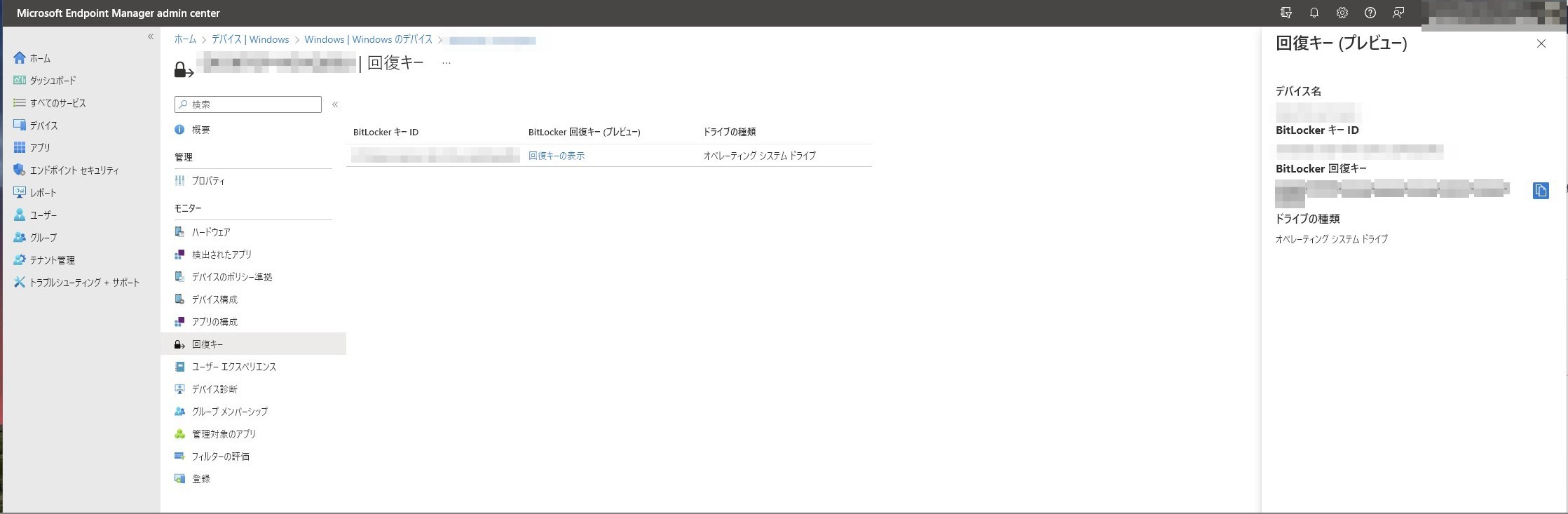 回復キーは紙に印刷して保存しておくほかにも、Microsoftアカウントに紐づけて実施してある場合や、Microsoft Intune で管理されている場合には、ロックされてしまった場合に別の端末から回復キーを取得できる場合が有ります