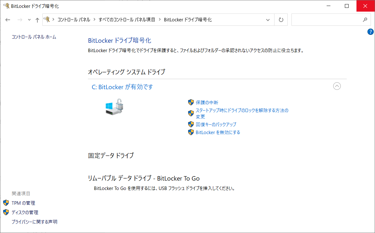 TPMの使い方の一つとしてWindowsのBitLockerが有ります