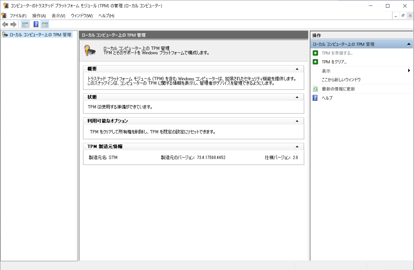 からも見られる TPM.msc でまずは初期化をしてみることにしました
